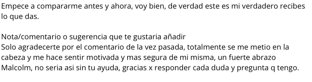 –Al realizar tu registro recibiras tu formulario inicial con +35 preguntas donde se busca abarcar todo absolutamente acerca de ti y tu dia a dia, para estructurar un programa con alimentos de tu gusto, horarios establecidos para comidas, tiempos sostenibles en tu entrenamiento, numero de comidas que SI puedas realizar y sobre todo buscar lograr tus objetivos y aprender a sobrellevar este estilo de vida